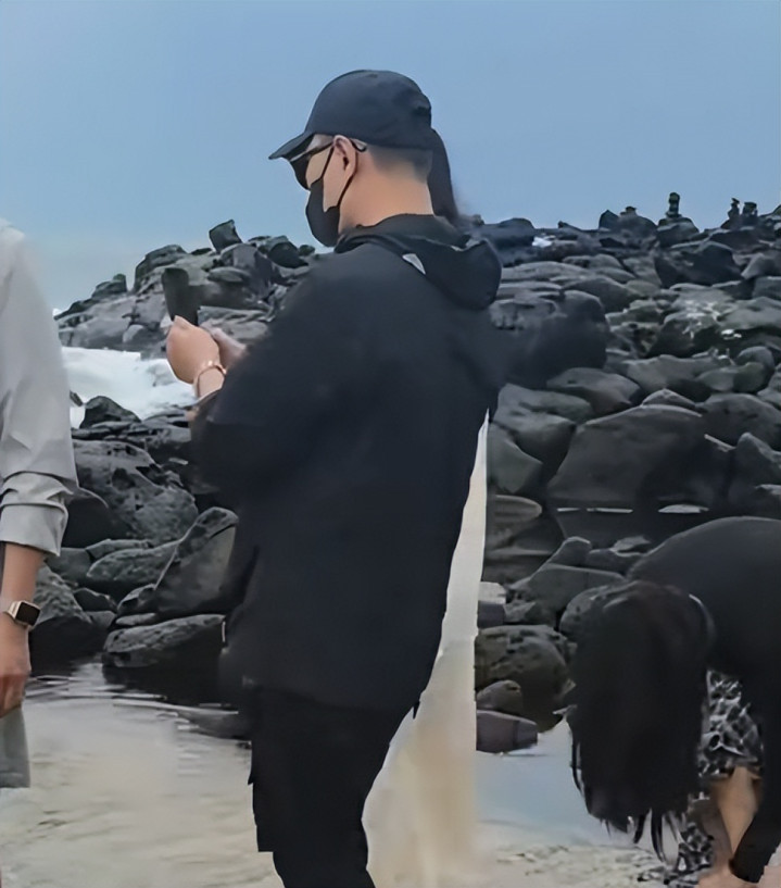 在济州岛露面时,汪峰戴着一只口罩。