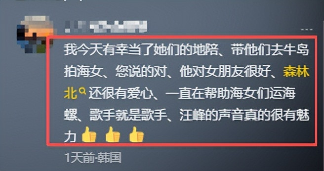 济州岛当地的游客们,也是对森林北做出了很高的评价,言语之中,全是对森林北的夸赞。