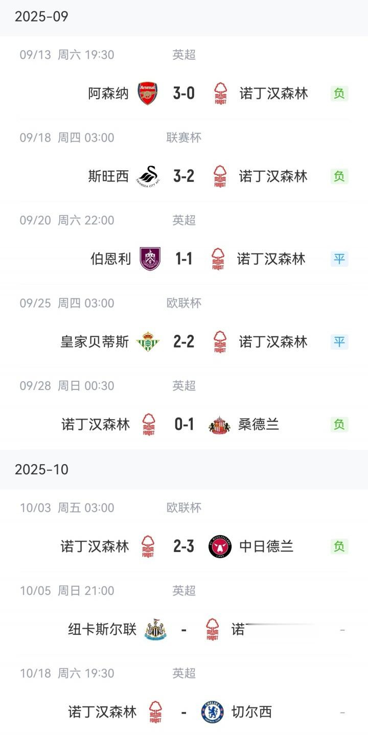 其中,森林在英超排名17,濒临降级区;联赛杯出局,无缘争冠;欧联杯2轮仅1分,排在淘汰区。