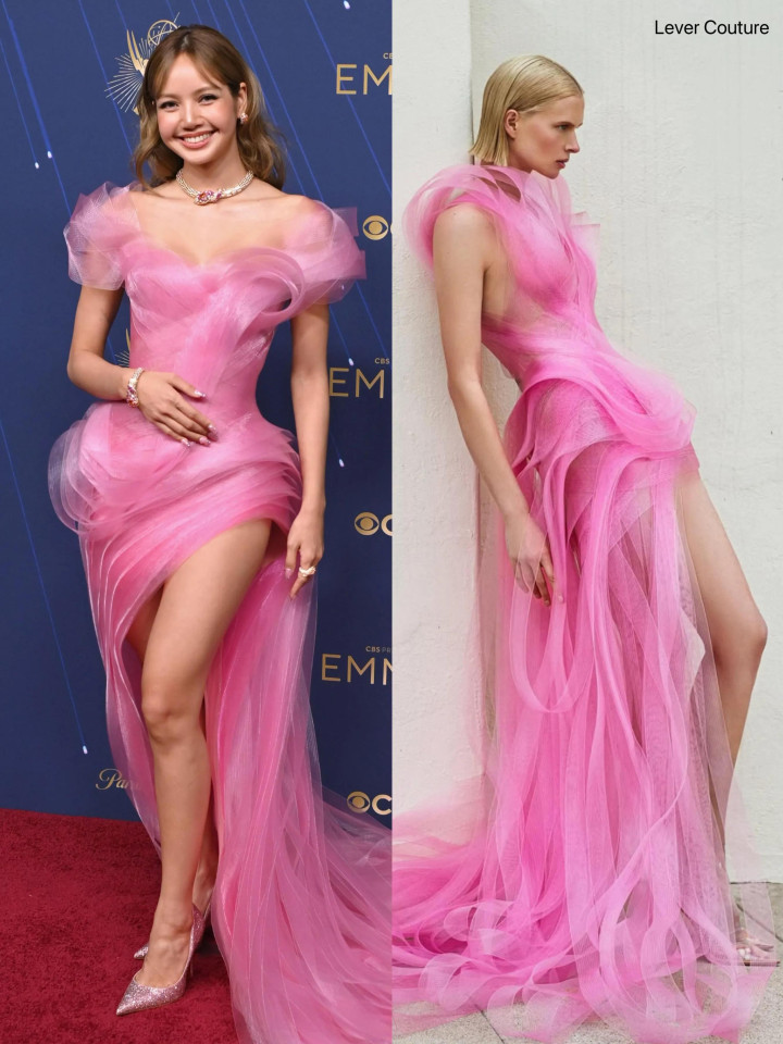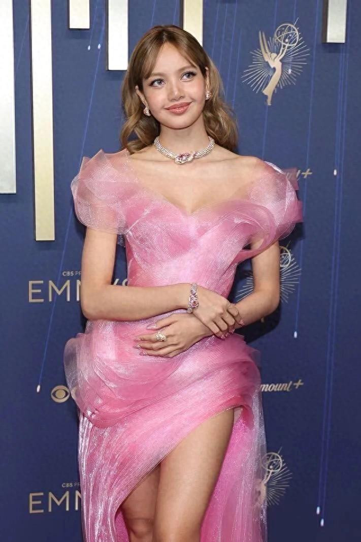 Lisa穿粉色纱裙走艾美奖红毯, 全场宠她, 气质没有给她提裙的人好