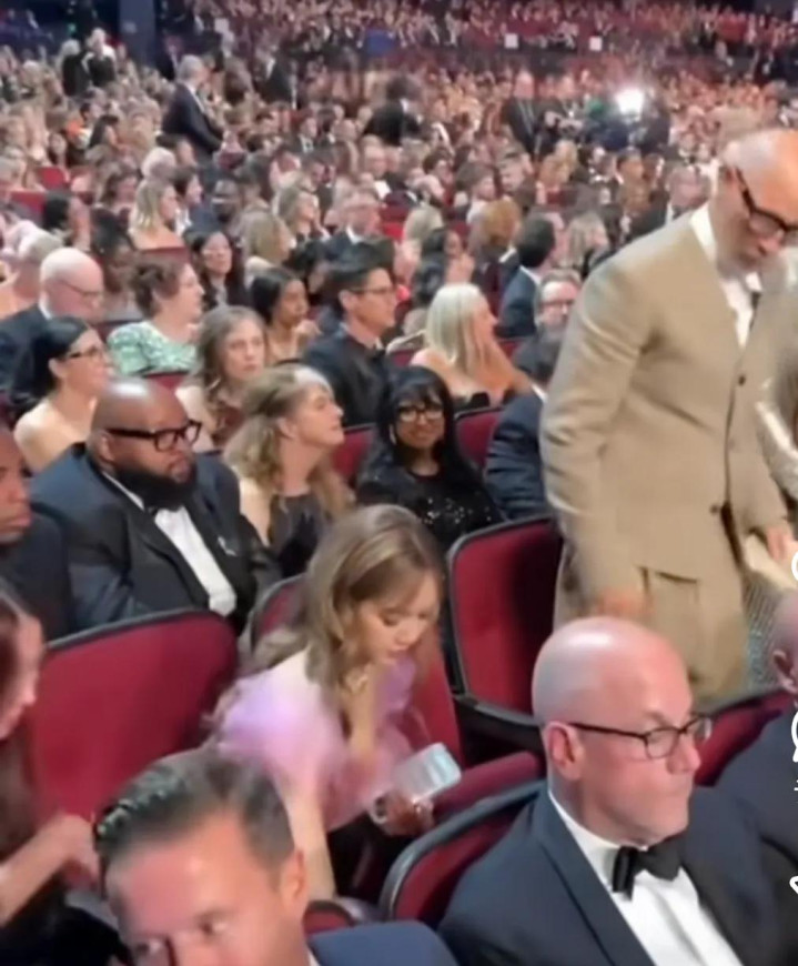 艾美奖内场还有人cos了Labubu,Lisa激动的和Labubu合影了,这个Labubu的妆容画的太难看了,有种中式恐怖片的感觉。不过能看出Labubu在美国很火。