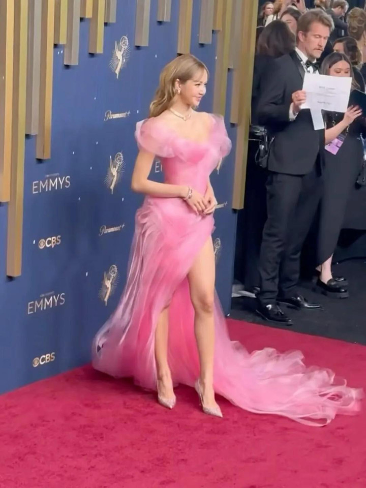 Lisa在艾美奖红毯上粉嫩嫩的,她青春洋溢,笑容灿烂,她成了当晚红毯上的焦点。