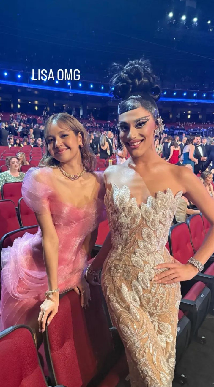 Lisa还和Jewels Sparkles在艾美奖上合影了,Lisa的表情像个骄傲的孩子。Lisa在艾美奖颁奖礼上很耀眼,大家都宠着她,这位LV准太子妃的待遇是真好。