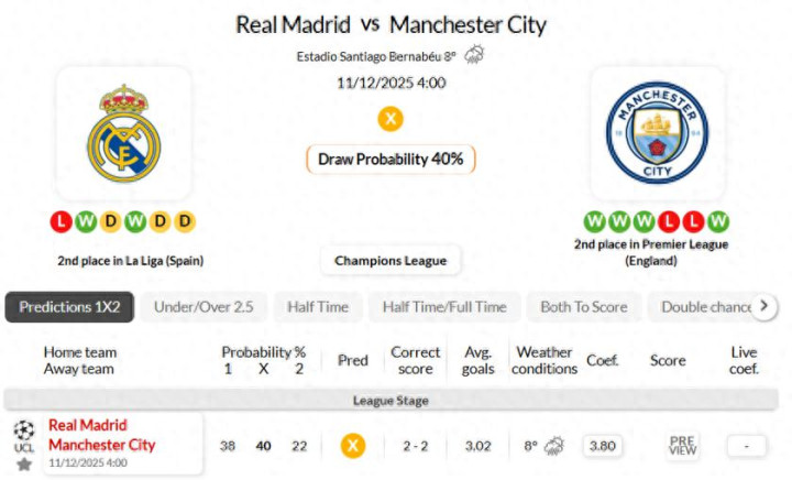 皇马历史占优, 曼城客场低迷! 海外情报: 皇马VS曼城
