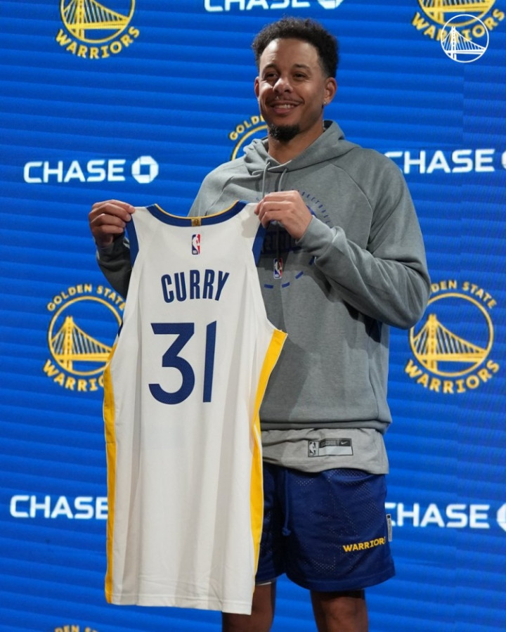 可惜30号有人了! 勇士官方晒照: 赛斯-库里将穿31号球衣!